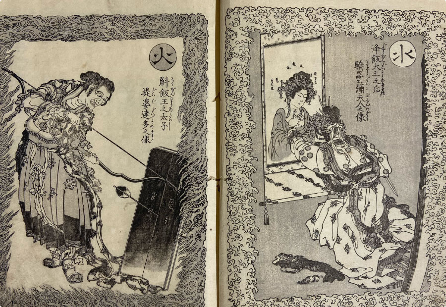 特に北斎が描く水の姿は、他の絵師よりも群を抜いていた。彼の代表作である錦絵「冨嶽三十六景 神奈川沖浪裏」や、版本『冨嶽百景』中の「海上の不二」に見られるような砕ける波の表現は、まるでカメラのシャッターを切ったかのように一瞬の動きを画面に閉じ込めた、強烈な印象を与える作品だ。作品の中に描かれた水を追えば、とどまる事を知らないそれを己の目で追い続けた北斎の執念さえ伝わってくる。
